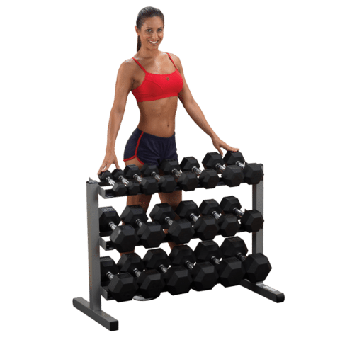 Keep your workout area organized, clean and, most importantly, safe. Our weight trees and dumbbell racks can be placed against any wall or centered in a room. Nobody builds stronger or more space efficient storage units. Heavy gauge steel with all-4-side welded construction is deburred inside and out for user safety. Holds one (1) pair each of 5-50 lb. hex dumbbells.