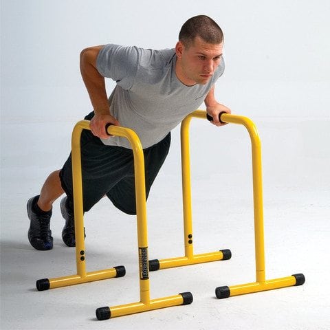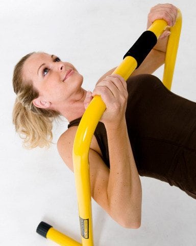 Each Equalizer bar weighs 8 pounds and comes in 3 colours – yellow, pink or lime. The dimensions are 28-1/2 inches high by 25 inches wide and it has been tested to support up to 400 pounds of body weight. The Equalizers can easily be stacked together, taking up little storage space.