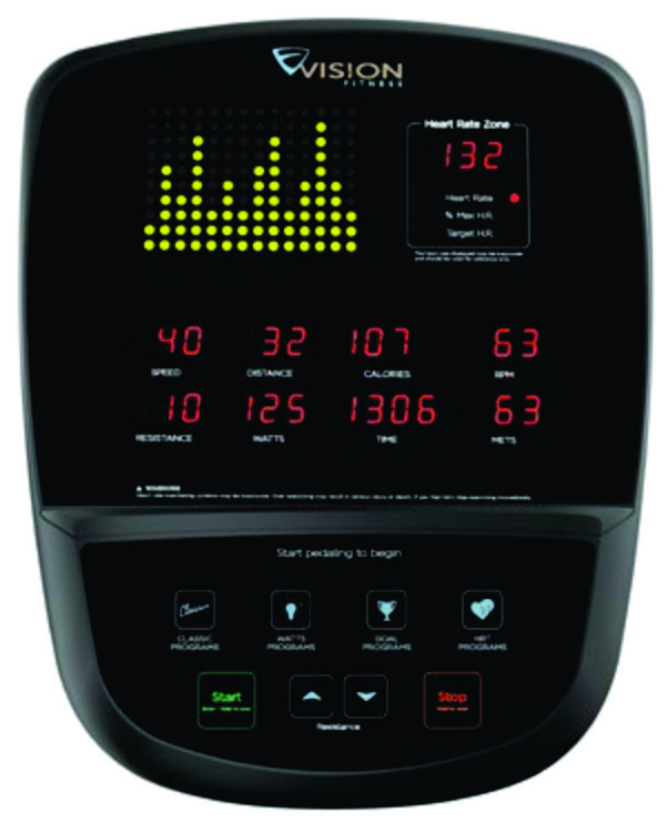 • Wireless receiver and contact grips enable heart rate training
